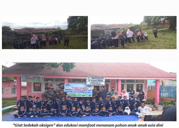 Edukasi pelestarian lingkungan tercermin dalam giat sedekah oksigen yang bertujuan mengajak partisipasi kompenen masyarakat untuk menyadari betapa pentingnya keberadaan pohon untuk mewujudkan suatu kondisi atau keadaan kualitas lingkungan yang baik yang mesti kita wujudkan dengan solusi dan aksi nyata dengan menanam pohon dan edukasi dilakukan kesemua golongan/kelompok masyarakat termaksud masyarakat anak-anak usia dini agar mereka menyayanggi lingkungan dengan menanam pohon.