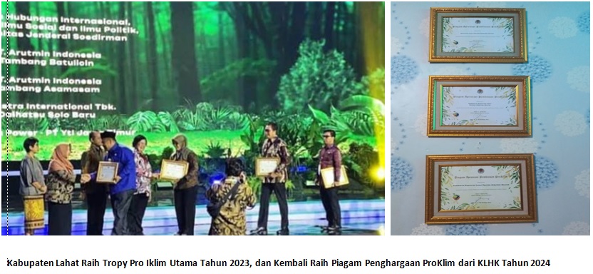 Kabupaten Lahat di tahun 2022 kembali mendapat Trophy ProKlim Utama untuk Desa Bandar Jaya Kecamatan  Kikim Barat. Setelah terakhir kalinya mendapatkan trophy tersebut di Tahun 2018. Sekaligus mendapatkan penghargaan berupa “Apresiasi Pembinaan ProKlim ditingkat Kabupaten se-Indonesia” dari Kementerian Lingkungan Hidup dan Kehutanan yang diserahkan oleh menteri KLHK Siti Nurbaya. Sementara itu pada Tahun 2023 dari 360 desa sekabupaten Lahat, Desa Arahan Kecamatan Merapi Timur menjadi satu-satunya yang menerima penghargaan Trophy ProKlim Kategori Utama di Tahun 2023. Pada tahun 2024 Kabupaten Lahat kembali menerima penghargaan Dua Trophy ProKlim Utama untuk Desa Pulau Panggung Kecamatan Pajar Bulan, dan Desa Pagar Dewa Kecamatan Jarai. Di Tahun 2023 dan 2024 ini Pemerintah Kabupaten Lahat juga mendapatkan penghargaan “Apresiasi Pembinaan ProKlim” dari Kementerian LHK.